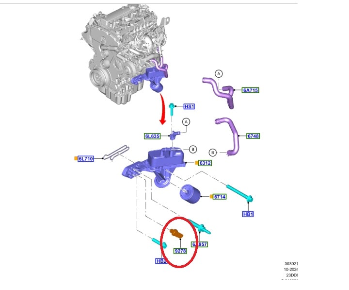 Cảm biến dầu ford transit 2024-2030 (cảm biến nhớt ford transit cảm biến dầu két sinh hàn ford transit 3S719278AC-3S7Z9278B )