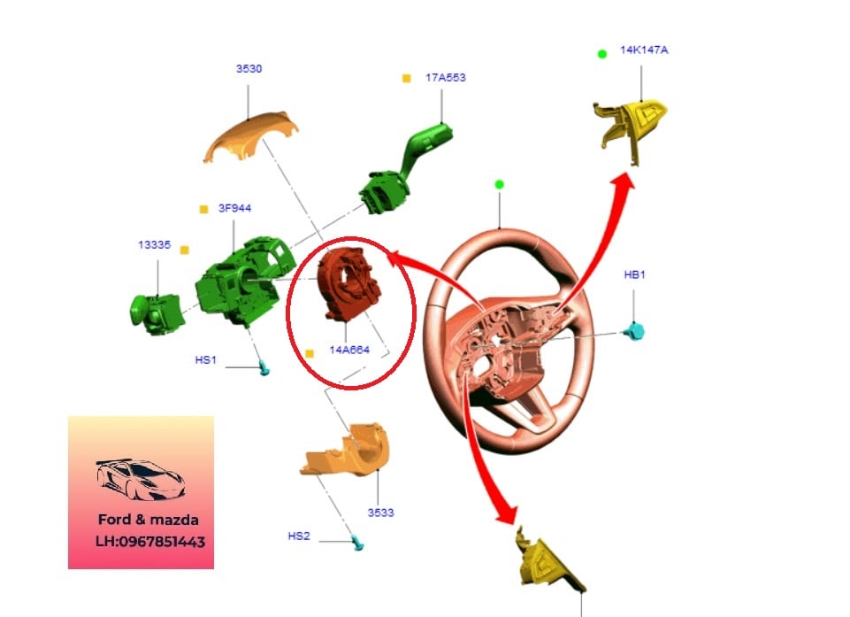 Cót còi vô lăng ford ecosport 2018-2022 (cuộn cáp còi vô lăng ford ecosport cáp còi ford ecosport- GN1514A664AB)