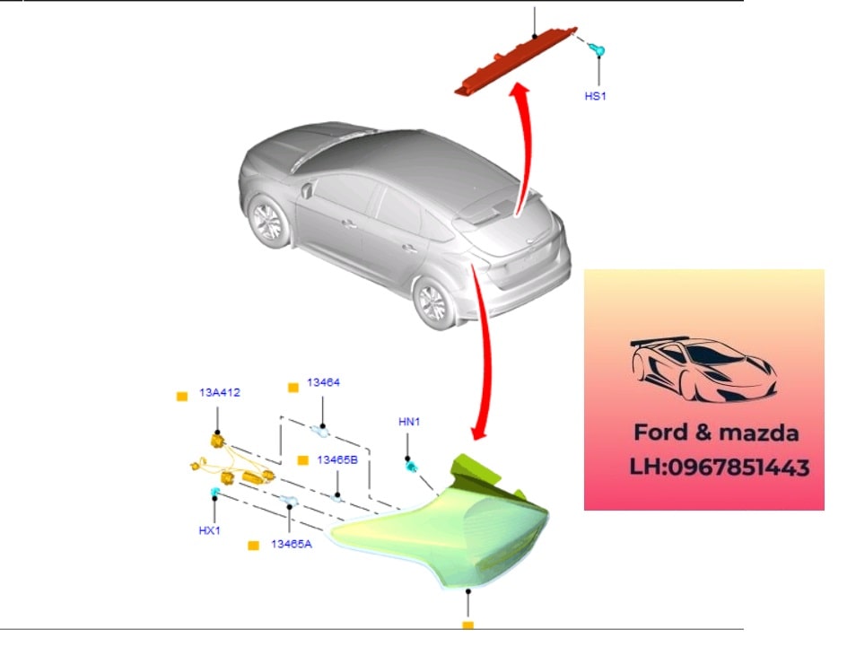 Đèn hậu ford focus 2015-2016-2018-2019 đèn cốp sau ford focus đèn hậu ngoài focus đèn hậu trong focus F1EB13405JE-F1EB13404JE