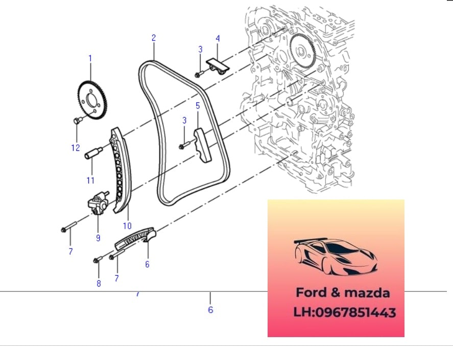 hình ảnh Tăng xích cam ford transit 2008-2022(Tăng sên cam ford transit BK2Q6K261AA)